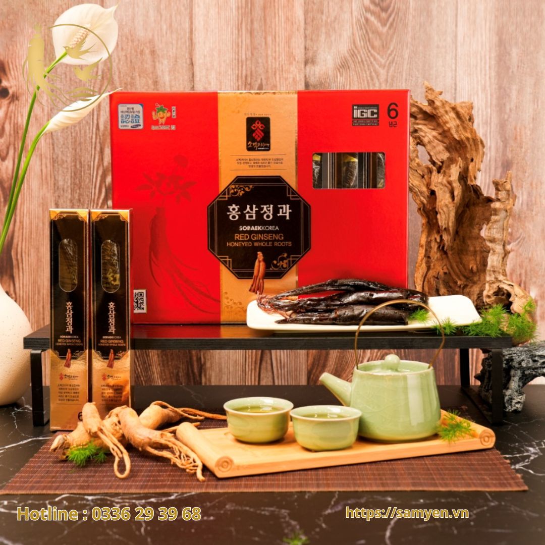 Hồng Sâm Củ Tẩm Mật Ong Sobaek Hàn Quốc (hay còn gọi là Hồng sâm dẻo tẩm mật ong) từ lâu đã trở thành một trong những sản phẩm chăm sóc sức khỏe được săn đón nhất. Sự ưa chuộng này không chỉ đến từ thương hiệu uy tín mà còn từ quy trình chế biến kỳ công và chất lượng nguyên liệu thượng hạng.